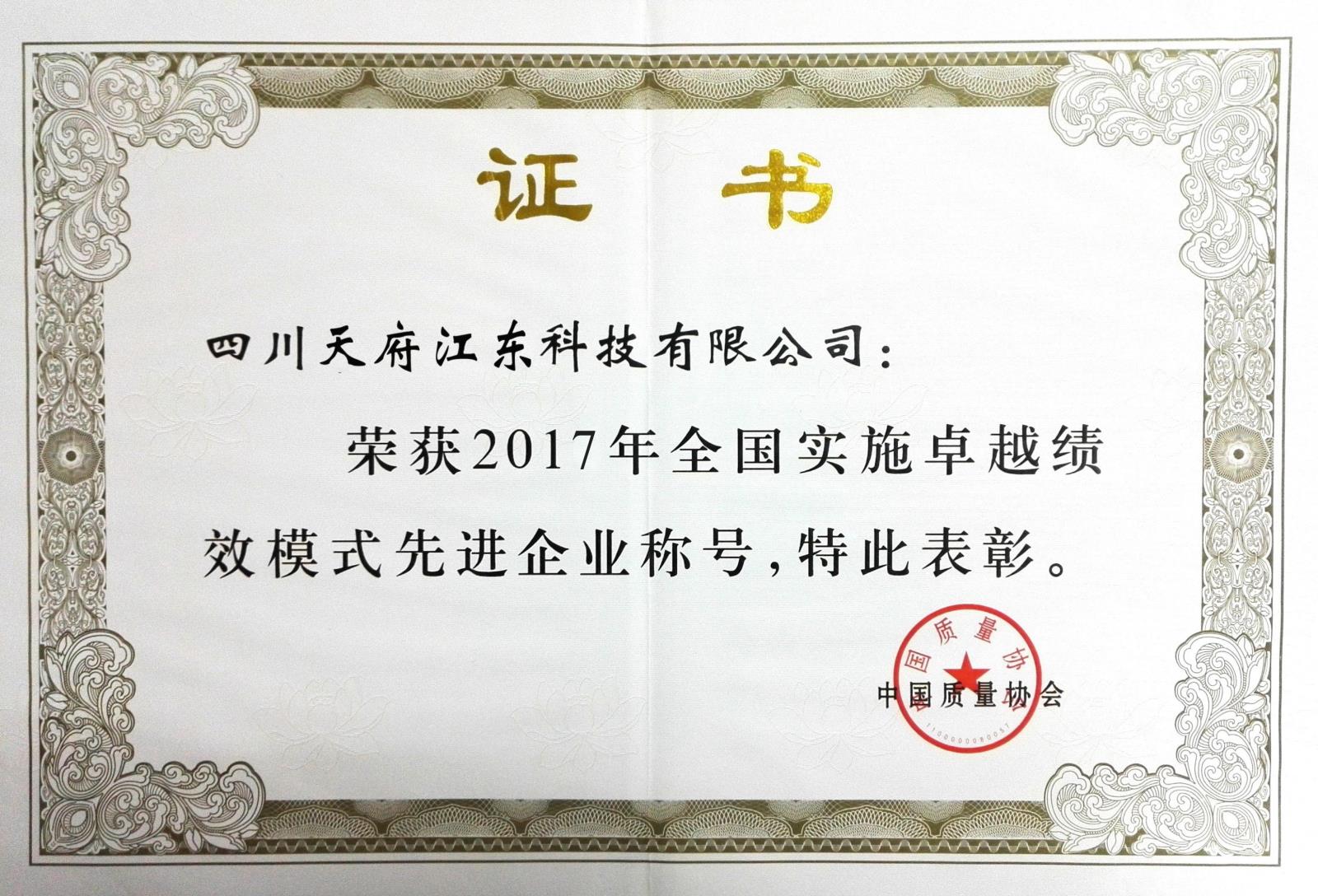被評為實施全國卓越績效先進(jìn)企業(yè)